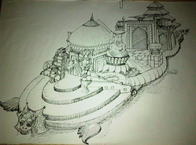 Projeto Cenográfico de alegorias e adereços para o Grêmio Recreativo Escola de samba União da Ilha do Governador – Enredo “AbraKadabra” o despertar dos mágicos.